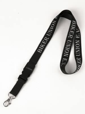 schwarzes Band mit abnehmbaren Schlüsselteil und Karabinerhaken